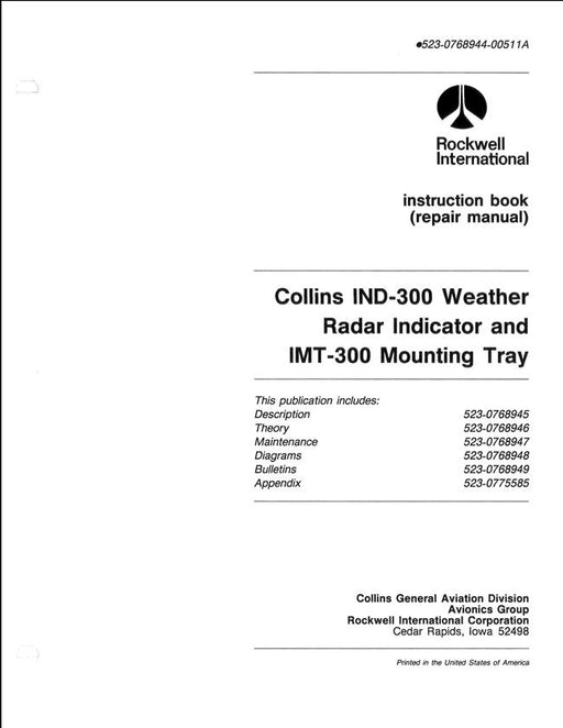 $69.00| /Collins IND-300 Weather Radar Indicator & IMT-300 Mounting Tray Instruction Book (523-0768944-00511A)