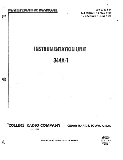 $23.00| /Collins 344A-1 Instrumentation Unit Maintenance Manual (520-5732-004)Collins3rd Edition, May 1959 1st Revision, June 1962 $23.00| /Sale