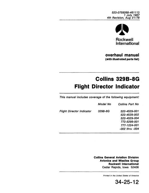 $95.00| /Collins 329B-8G 1967 Overhaul Manual (523-0759268-201)CollinsFlight Director Indicator 2nd Revision, Sept. 1969 $95.00| /Sale