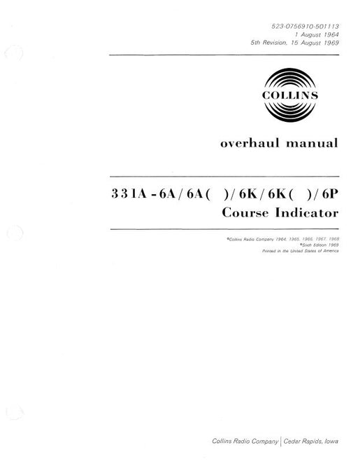 Sale $51.00| /Collins 331A-6P Course Indicator 1971 Overhaul Manual (with Illustrated Parts List) (523-0762684-401)Collins4th Revision, March 1975 $51.00| /Sale