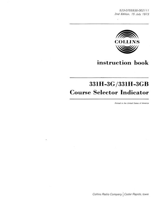 $32.00| /Collins 331H-3G-331H-3GB 1973 Instruction Book (523-0755935-002)CollinsCourse Selector Indicator $32.00| /Sale