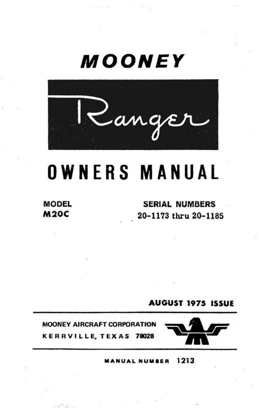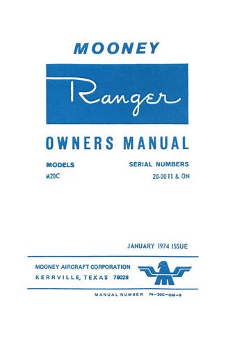 $12.00| /Mooney M20C Ranger 1974 Owner's Manual (74-20C-0M-B)