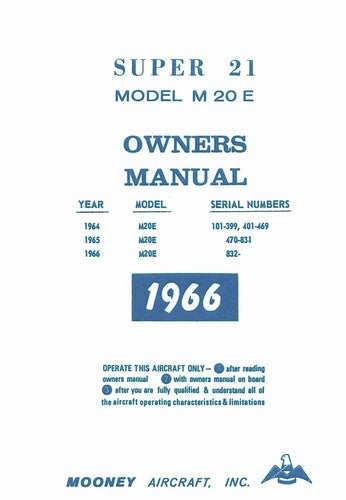 $12.00| /Mooney M20E Super 21 1964-66 Owner's Manual (MOM20E64-66O)