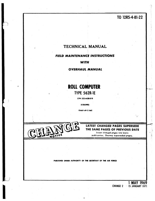 $54.00| /Collins 562R-1E Roll Computer 1969 Field Maintenance Instructions with Overhaul Manual (12RS-4-81-22)CollinsRevised Jan. 1971 $54.00| /Sale
