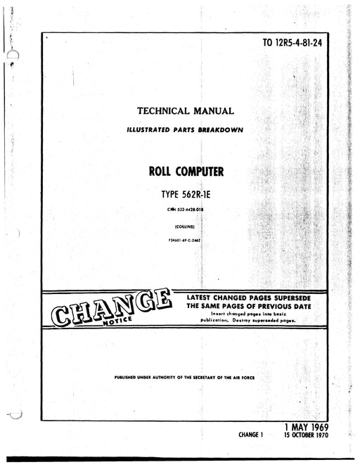 $17.00| /Collins 562R-1E Roll Computer Illustrated Parts Manual TO 12R5-4-81-24CollinsIssued May 1, 1969 - Change 1 October 15,1970 $17.00| /Sale