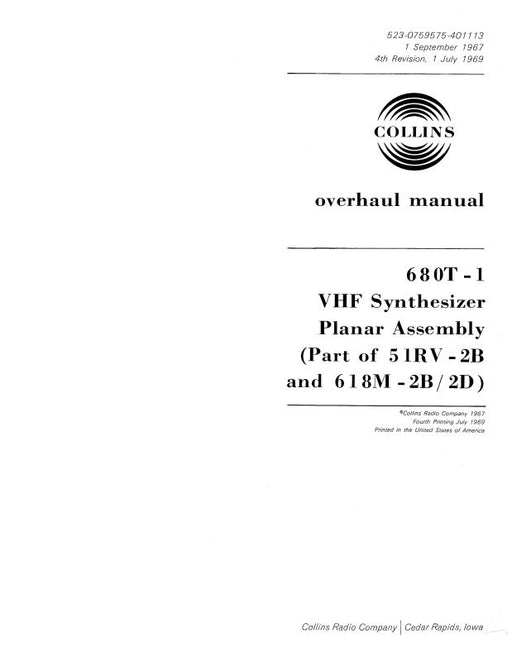 $75.00| /Collins 51RV-2B,618M-2B-2D 1969 Overhaul Manual (523-0759575-401)CollinsVHF Synthesizer Planar Assembly $75.00| /Sale