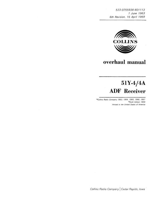 Sale $89.00| /Collins 51Y-7-7A ADF Receiver 1969 Overhaul Manual with Illustrated Parts List (523-0762367-201)Collins2nd Revision, Nov. 1972 $89.00| /Sale