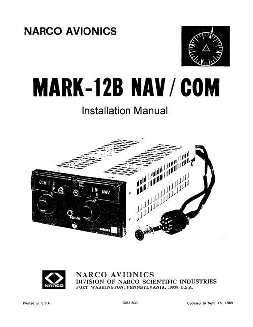 Sale $14.00| /Narco Mark 12A VHF Transceiver 1965 Installation Manual (3077-620)