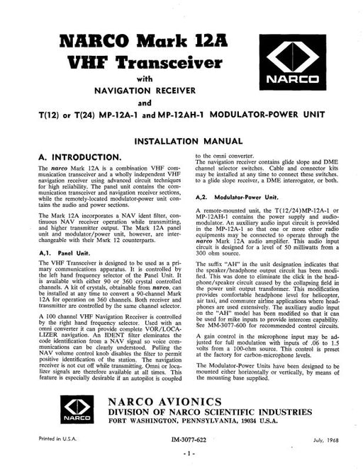 NarcoWith Navigation Receiver and T(12) or T(24) MP-12A-1 and MP-12AH-1 Modulator-Power Unit