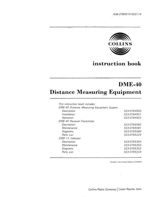 Sale $83.00| /Collins DME-40&339F-12-12( ) 1980 Instruction Book (523-0770178-101)