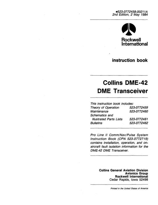 Sale $155.00| /Collins DME-42 Transceiver 1990 Instruction Manual (with repair) (523-0772458-00511A)