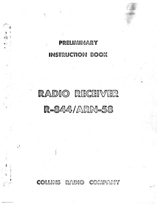 $40.00| /Collins R-844-ARN-58 1958 Preliminary Instruction Book (520-5862-00)
