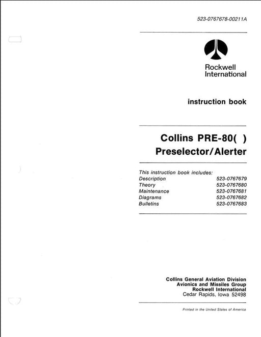 $40.00| /Collins PRE-80( ) Preselector-Alerter Instruction Book (523-0767678-00211A)