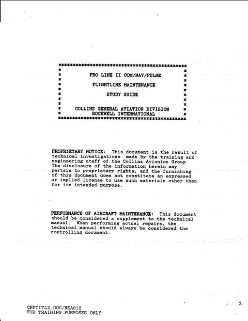 CollinsPro Line II Com/Nav/Pulse Flightline Maintenance Study Guide